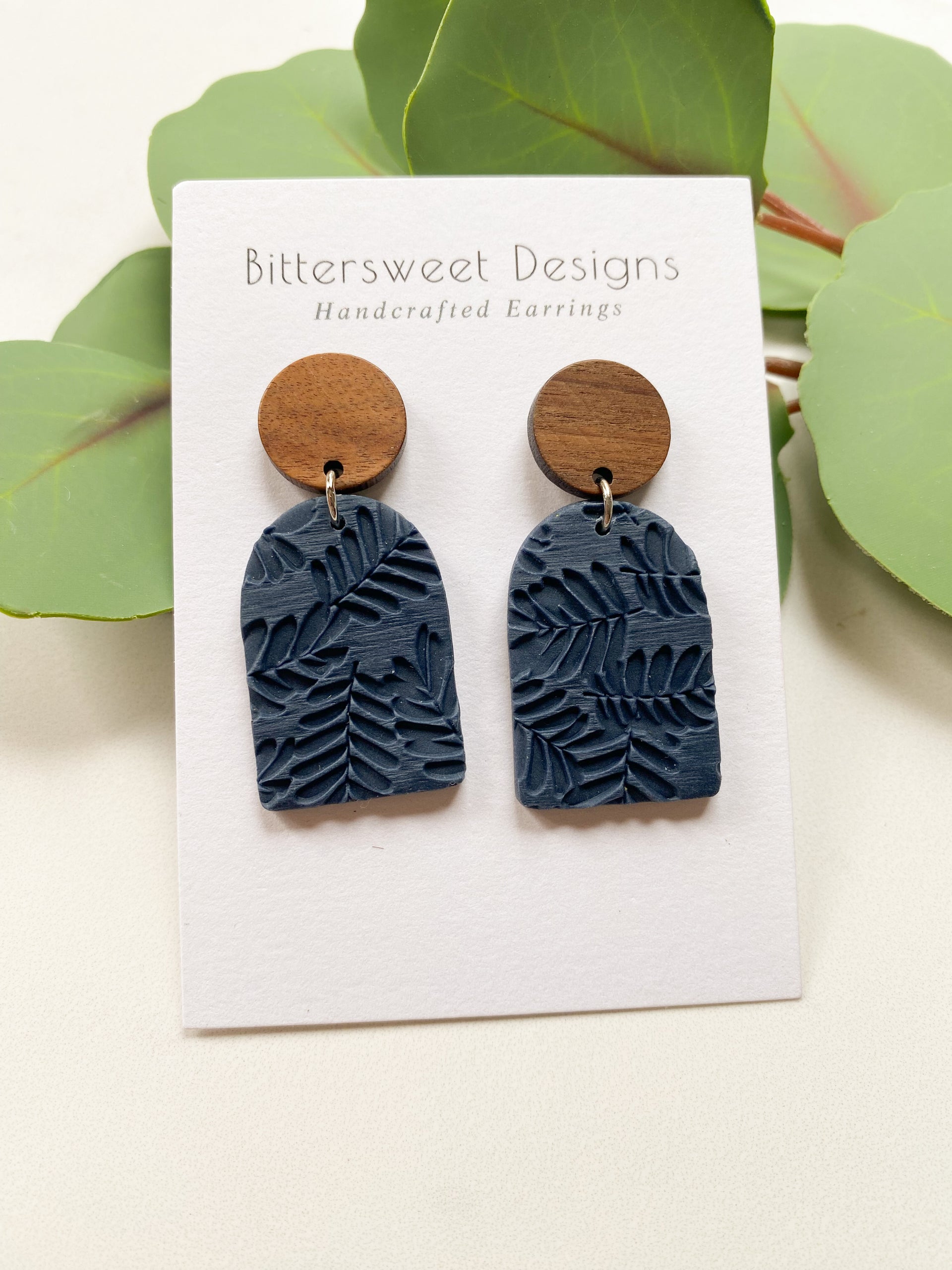 Return to shopNavy blue clay with a fern texture.